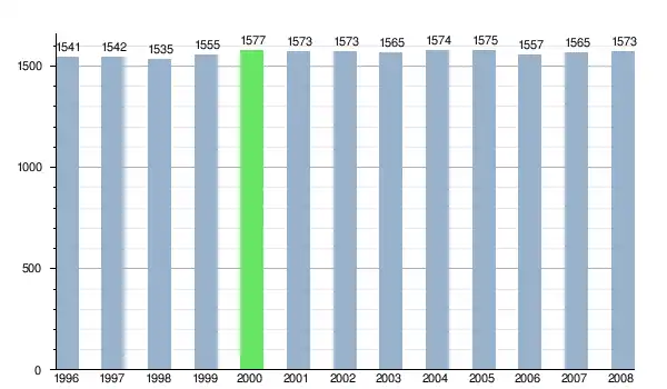 Według danych z dnia 31 grudnia 2012, wieś zamieszkiwało 1640 osób, w tym 871 kobiet i 769 mężczyzn[6].