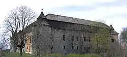 Na wzgórzu znajduje się piętrowy kasztel z 1. połowy XVII w., postawiony w miejscu starszego, prawdopodobnie z początku XIV w., spalonego przez wojska cesarskie w 1604. Pozostałości gotyckiego zamku zostały włączone do nowej budowli o kształcie nieregularnego czworokąta. Pierwotnie był to budynek renesansowy. W XVIII w. zamek przebudowano w stylu barokowo-klasycystycznym. Został poważnie zniszczony w czasie II wojny światowej. W latach 1951–1953 poddano go konserwacji zabezpieczającej przed dalszym rozpadem[9].