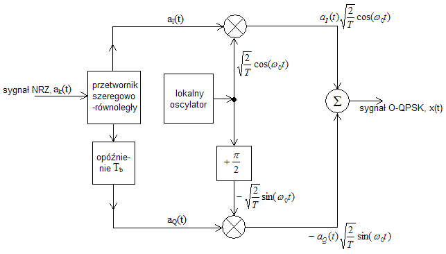 Wtedy sygnał O-QPSK jest opisywany następująco: