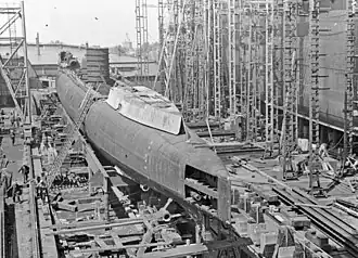 W roku 1936 do Hagi pojechali członkowie Komisji Nadzorczej Budowy Okrętów, której przewodniczył kmdr ppor. inż. Seweryn Bukowski. Zadaniem komisji była kontrola przestrzegania warunków kontraktu, składanie miesięcznych sprawozdań z postępów budowy, kontrola terminów płatności, a także koordynacja zamówień na dostawę niezbędnych do budowy okrętu materiałów[4][25]. Prace biura konstrukcyjnego, w których końcowej fazie brali udział członkowie Komisji Nadzorczej, trwały do 14 sierpnia 1936. Tego dnia na pochylni stoczni we Vlissingen położono stępkę pod pierwszy z zamówionych okrętów[25]. 30 marca 1937 roku ukończono proces zakładania wręg jednostki. 14 maja tego samego roku zamknięto poszycie okrętu, od 29 października natomiast do 2 listopada 1937 roku trwał montaż głównych silników elektrycznych[35].