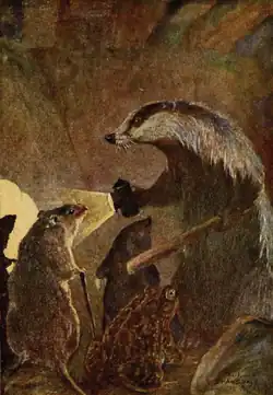 - Borsuk - Opryskliwy i nieprzyjazny mieszkaniec puszczy, który „po prostu nienawidzi społeczeństwa”. Jest dobrym przyjacielem Kreta i Szczura. Dawny kompan nieżyjącego ojca Ropucha. Jego syna traktuje surowo i z powagą, jednak ma wobec niego dobre intencje. Może być postrzegany jako mądry pustelnik i dobry lider, kierujący się zdrowym rozsądkiem. Cechują go odwaga i zdolności strategiczne; pomaga usunąć łasice z pałacu Ropucha.