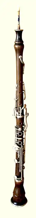 Instrument ten stanowi podłużna rura, lekko stożkowa, zakończona lejkowatym rozszerzeniem. Otwory nawiercone na długości instrumentu otwierane i zamykane są klapami. W instrument dmie się za pośrednictwem cienkiej, metalowej rurki (otoczonej korkiem, na którą nawija się podwójną trzcinkę) ze stosunkowo dużym ciśnieniem, a jednocześnie niewielką ilością powietrza. Stroik umieszczony u wylotu rurki, składa się z dwóch listków wykonanych z trzciny z gatunku Arundo donax – i złożonych ze sobą. Powietrze przepływając pomiędzy nimi wywołuje ich wibrację (drganie). Korpus instrumentu tradycyjnie wykonywany jest z drewna, najczęściej afrykańskiej dalbergii czarnodrzew (tzw. fałszywego hebanu, drewna grenadilla[2]) lub z drewna cocobolo (pochodzącego np. z Dalbergia retusa)[2], istnieją także egzemplarze wykonane z palisandru (Dalbergia nigra). Standardowa długość instrumentu wynosi ok. 65 cm.