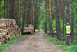 - ↑ Otwarta Encyklopedia Leśna, Ścinka i obalanie drzew [online], www.encyklopedia.lasypolskie.pl [dostęp 2021-05-06].