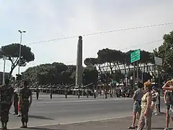 W 2002 roku uderzył w niego piorun (stela była osadzona na żelaznym pręcie) i zniszczył wierzchołek, co spowodowało konieczność poddania obelisku konserwacji[10][12]. Pierwsze kroki w celu rozebrania obelisku i przewiezienia go na miejsce przeznaczenia podjęto w listopadzie 2003 roku, kiedy rząd Włoch podjął decyzję o pokryciu kosztów przedsięwzięcia[11].