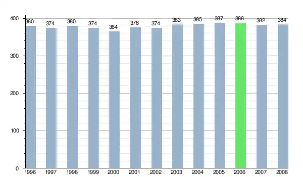 Według danych z dnia 31 grudnia 2012, wieś zamieszkiwały 432 osoby, w tym 215 kobiet i 217 mężczyzn[6].