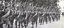 ![]() Belgijscy oficerowie przy zdobycznych, włoskich działach | |||