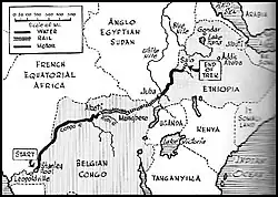 Siły Wolnych Francuzów umocniły swoją kontrolę nad Afryką Równikową w kampanii o Gabon, a większe zaangażowanie Niemiec w kampanię bałkańską sprawiło, że ryzyko interwencji w koloniach portugalskich było znikome[9]. Sztab „Force Publique” i rząd belgijski postanowili wobec tego zorganizować wyprawę wojenną do Włoskiej Afryki Wschodniej[11]. Plany były uzgodnione z Brytyjczykami i w lutym 1941 roku, po dłuższym okresie przygotowań, pierwsza grupa 8000 żołnierzy i tragarzy wyruszyła z Konga do Etiopii[10]. Zaczynając w Stanley Pool, przeprowadzili kilkanaście 10-tonowych barek i holownik w górę rzeki Kongo do Aketi. Siły ekspedycyjne poruszały się najpierw linią Vicicongo (kolejką wąskotorową) z Aketi do Mungbere, a następnie ciężarówkami do Dżuby w Sudanie, skąd dotarły do Białego Nilu[12]. Po pięciu dniach podróży pierwszy batalion belgijsko-kongijski dotarł do Malakali i pomaszerował do granicznego miasta Kurmuk, zanim wkroczył do Etiopii[13].