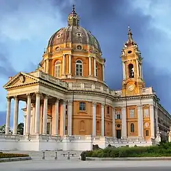 - ↑ Od wyniosłego nadpadańskiego wzgórza na wschód od Turynu, jednego z najwyższych w pierścieniu otaczającym miasto, z którego obaj wodzowie dokonywali oceny sytuacji przed bitwą. Budowana od 1717, została konsekrowana w 1727 (por. Jeremy Black: Europa XVIII wieku. 1700–1789. Warszawa: PIW, 1997, s. 277).