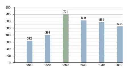 Liczba ludności w ostatnich 3 wiekach (wieś i majątek)[18][19][20][21]: