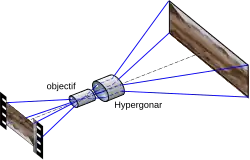 W celu wykorzystania całej powierzchni klatki filmowej stosuje się obiektywy z soczewkami anamorfotycznymi, które dwukrotnie kompresują (ściskają) obraz w poziomie (Rys. 2). Wraz ze zwiększeniem wykorzystania powierzchni klatki wzrasta również jakość zapisanego obrazu. Wprowadzone w procesie nagrywania zniekształcenie obrazu musi być odwrócone podczas jego odtwarzania, dlatego do projekcji używa się innej soczewki anamorfotycznej, rozciągającej obraz w poziomie do odpowiednich proporcji. Należy zwrócić uwagę, że obraz nie jest modyfikowany w pionie w żaden sposób, a soczewka anamorfotyczna powoduje jedynie kompresję wymiaru w jednym kierunku, czyli w poziomie.