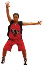 Za najpoprawniejszą postawę obrońcy uznaje się ustawienie przodem do przeciwnika, a tyłem do kosza. Nogi powinny być ugięte w kolanach, natomiast plecy wyprostowane. Ręce powinny znajdować się w górze, tak by sędzia mógł je widzieć. W obronie zawodnik porusza się krokiem „odstawno-dostawnym”, pamiętając, że najpierw odstawia nogę, a dopiero potem dostawia do niej drugą. Jedną stopę może obrócić palcami w kierunku w którym się porusza. Wtedy ta noga nazywana jest „nogą kierunkową”. Ta sama ręka, co „noga kierunkowa” może być opuszczona nieco niżej – nazywana jest „ręką kierunkową”. Przyjęcie takiej postawy umożliwia znacznie szybsze ruchy w obronie i umożliwia szybsze reakcje na ruchy przeciwnika, utrudniając mu przedarcie się przez obronę.