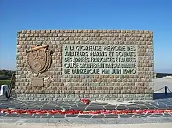Marmurowy pomnik upamiętniający bitwę został wzniesiony pod Dunkierką po wojnie. Napis w języku francuskim jest tłumaczony jako: „Ku chwalebnej pamięci pilotów, marynarzy i żołnierzy armii francuskiej i alianckiej, którzy poświęcili swoje życie w bitwie pod Dunkierką w maju – czerwcu 1940 r.”