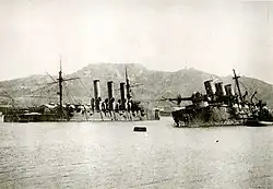 Tego samego dnia 6 japońskich krążowników zmusiło do samozatopienia rosyjski krążownik „Wariag” i kanonierkę „Koriejec” w boju pod Czemulpo.