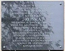 - ul. Okopowa 55A – tablica umieszczona na ścianie gmachu Zespołu Szkół im. Michała Konarskiego upamiętnia żołnierzy Batalionu „Zośka”, a w szczególności ich udział w obronie Woli;