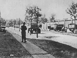 - ↑ Kilkunastu policjantów wtargnęło do domu przy ul. Okopowej 20, gdzie zanim ich ujęto zamordowali kilku polskich mężczyzn. Patrz: Borkiewicz 1969 ↓, s. 53.