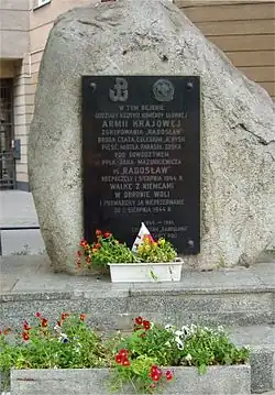 Udział Zgrupowania „Radosław” w walkach prowadzonych w sierpniu 1944 na terenie Woli został upamiętniony dziewięcioma pamiątkowymi tablicami lub głazami[116]:
