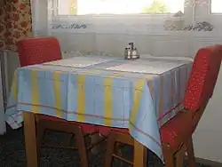 - ↑ History of Table Coverings, [w:] Tom Knisely, Handwoven Table Linens: 27 Fabulous Projects From a Master Weaver, Rowman & Littlefield, 30 kwietnia 2017, s. 3, ISBN 978-0-8117-6542-8 [dostęp 2022-08-26] (ang.).