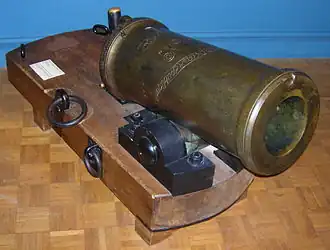 Pierwsze działa tego typu wyprodukowano w roku 1787, a użytkowano je do 1805. Do obsługi wymagały pięciu ludzi[1]. Haubice te zaprojektowano do wystrzeliwania pocisków eksplodujących z niewielką prędkością początkową. Miały być odpowiedzią na brytyjskie karonady w walce na bliską odległość, szczególnie skuteczną dla rażenia siły żywej nieprzyjaciela[2]. Ich amunicja miała jednak tendencję do samozapłonu i okazała się zbyt niebezpieczna dla załóg. W rezultacie francuska marynarka wojenna wycofała je w pierwszych miesiącach I Cesarstwa, przezbrajając się zdecydowanie na karonady[2].