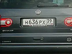 Tablice pojazdów zarejestrowanych w obwodzie królewieckim mają oznaczenie 39 lub 91[23] w prawym górnym rogu nad flagą Rosji i literami RUS.