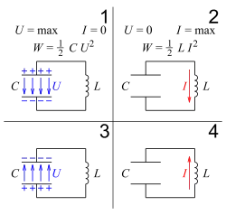 W obwodzie elektrycznym składającym się z kondensatora i cewki indukcyjnej energia może być zgromadzona w kondensatorze i cewce[1]: