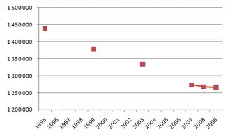 - 2009: 1 231 000 (897 000 miejska, 334 000 wiejska)[4]