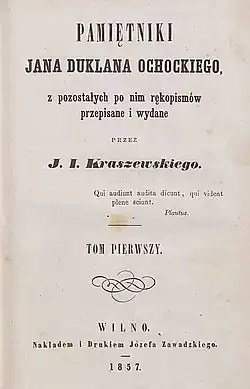 - ↑ J. D. Ochocki, Pamiętniki Jana Duklana Ochockiego, t. I-IV, Wilno 1857.