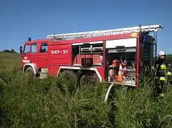 - samochód pożarniczy Mercedes Atego 1328 4x4 GBA 2,5/20 zabudowa Saurus.