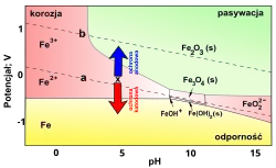 - ↑ Corrosion Thermodynamics: Potential-pH-diagram: iron. www.corrosion-doctors.org. [dostęp 2011-04-29].