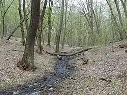 - Zamczysko – system dolinek oraz erozyjna ostroga wysoczyznowa ze średniowiecznym grodziskiem; w dnach dolinek łęgi strumykowe (olszowe), na zboczach i na wysoczyźnie lasy dębowe i sosnowe na siedliskach grądowych;