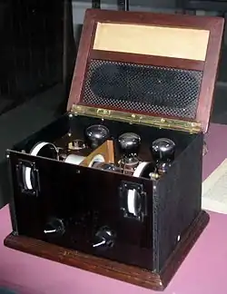 - Układ o bezpośrednim wzmocnieniu – zastosowanie wzmacniacza wielkiej częstotliwości (w.cz.) przed detektorem pozwoliło na odbiór dalekich stacji; by móc słuchać przy pomocy głośnika, zastosowano po detektorze wzmacniacz małej częstotliwości (m.cz.). Wzmacniacze w.cz. i m.cz. budowane były na lampach elektronowych.