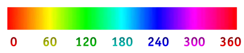 Mając dane wartości R (czerwony), G (zielony) i B (niebieski), wartość odcienia można wyznaczyć przy pomocy następującej tabelki:
