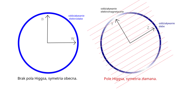 Według obecnej wiedzy, we wczesnych epokach Wszechświata istniała pełna symetria między oddziaływaniami słabymi i elektromagnetycznymi. Symetria ta została później złamana, w wyniku czego mamy obecnie dwa oddziaływania. Łamaniem symetrii tłumaczy się także różnicę mas pomiędzy bozonami oddziaływania słabego a fotonem.