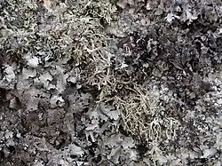Odnożyca pośrednia wśród innych porostów na granitowej skale | |