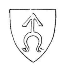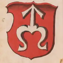- ↑ Opis współczesny jest skonstruowany zgodnie z obecnymi zasadami heraldyki. Zobacz: Blazonowanie.