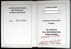 ZA ZASŁUGI DLA WOJEWÓDZTWA SUWALSKIEGO |