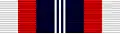 Odznaka jest zawieszona na wstążce długości 70 mm i szerokości 40 mm z symetrycznymi względem podłużnej osi pionowymi paskami koloru białego i czerwonego, każdy szerokości 6 mm. Przez środek wstążki przebiega granatowy pasek szerokości 16 mm. Na podobnej wstążce zawieszana była Odznaka „W Służbie Narodu”.