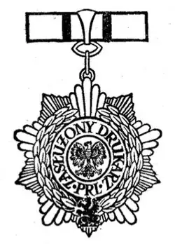 - ↑ Odznaka tytułu honorowego „Zasłużony Drukarz PRL”. [dostęp 2013-06-27].
