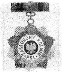 - ↑ Odznaka tytułu honorowego „Zasłużony Rolnik PRL”. [dostęp 2013-06-27].