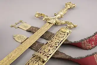 Stolica apostolska od średniowiecza wyróżniała władców i osobistości zasłużone w obronie wiary drogocennymi przedmiotami, stanowiącymi rycerskie symbole ich waleczności i poświęcenia dla Kościoła – mieczem i kapeluszem. Równolegle istniał też zwyczaj ofiarowywania Złotej Róży, która początkowo trafiała do rąk wodzów i monarchów, a dopiero w okresie późno nowożytnym stała się darem przeznaczonym dla wybitnych kobiet. Złotą Różę otrzymał m.in. Aleksander Jagiellończyk, obdarowany przez papieża Juliusza II w 1505 roku. Dary, miecz i kapelusz, papież święcił co roku w wigilię Bożego Narodzenia, a Złotą Różę w czwartą niedzielę Wielkiego Postu. Początkowo Sobieskiego miał uhonorować papież Klemens X. Wręczenie miecza i kapelusza zaplanowano na 1674 rok. Jednakże do ceremonii nie doszło, gdyż król odmówił ich przyjęcia z powodu nieprzyznania Złotej Róży jego małżonce, Marii Kazimierze. Powrót do koncepcji uhonorowania polskiego króla nastąpił w roku 1676 za sprawą kolejnego papieża – Innocentego XI. W związku z narastającym zagrożeniem Europy ze strony Turków, papież postanowił zyskać w Sobieskim sojusznika w kampanii w obronie chrześcijaństwa[1][2].