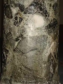 - skała metamorficzna, marmur zawierający warstewki, gniazda lub żyłki serpentynów;