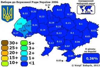 - W wyborach do Rady Najwyższej w 2006 roku partia po raz pierwszy startowała samodzielnie. Otrzymała 91 321 głosów (0,36%, 18 miejsce). W czasie wyborów Centralna Komisja Wyborcza Ukrainy wniosła do Prokuratury Generalnej Ukrainy o delegalizację partii, pod zarzutem, że program partii narusza konstytucję kraju, ale wniosek ten został oddalony.