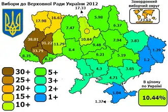 - ↑ Вибори народних депутатів України 28 жовтня 2012 року. [dostęp 2014-12-27]. [zarchiwizowane z tego adresu (2012-10-30)].