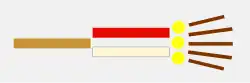 Brązowy – kość ramienna. czerwony – kość łokciowa, beżowy – kość promieniowa, żółty – nadgarstek, ciemnobrązowy – śródręcze i paliczki