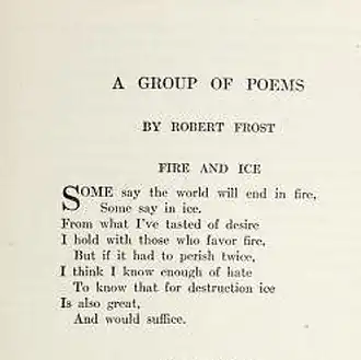 - ↑ Fire and Ice by Robert Frost. [dostęp 2024-01-25].
