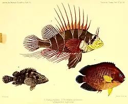 - ↑ Mizuki Matsunuma, Hiroyuki Motomura. Redescriptions of Pterois radiata and Pterois cincta (Scorpaenidae: Pteroinae) with notes on geographic morphological variations in P. radiata. „Ichthyological Research”. 63 (1), s. 145–172, 2016. Springer Japan. DOI: 10.1007/s10228-015-0483-6. ISSN 1616-3915. (ang.).