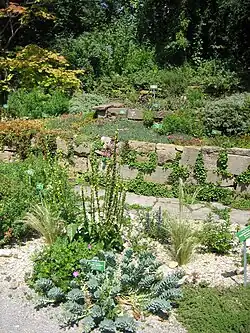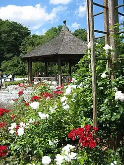- Ogród różany (rozarium) – ogród prezentujący kolekcję 280 gatunków i odmian róż, w jego centrum znajduje się altana – pawilon różany. Na północ od ogrodu znajdują się również ogrody szałwiowy i dalii,