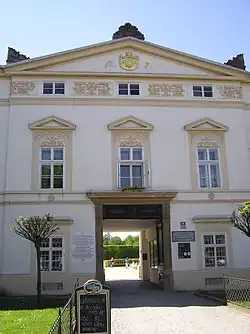 Obecne główne wejście powstało w latach 1840–1845 w stylu empire. Po bokach znajdują się dwie szklarnie, a w jednej z nich urządzono niewielką palmiarnię.