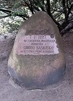 - Kamień pamiątkowy ustawiony w 1927 w dwusetną rocznicę oddania Ogrodu do użytku publicznego[30]