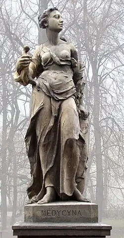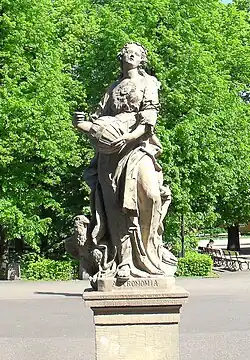 - 21 barokowych rzeźb muz i cnót (Jan Jerzy Plersch)