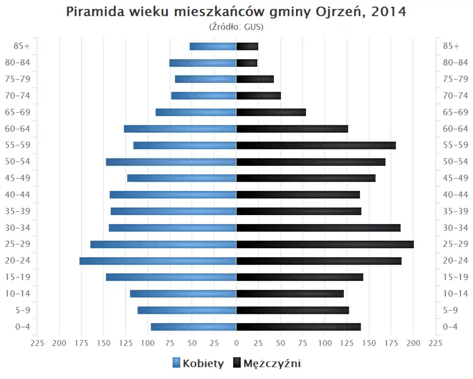 - Piramida wieku mieszkańców gminy Ojrzeń w 2014 roku[7].